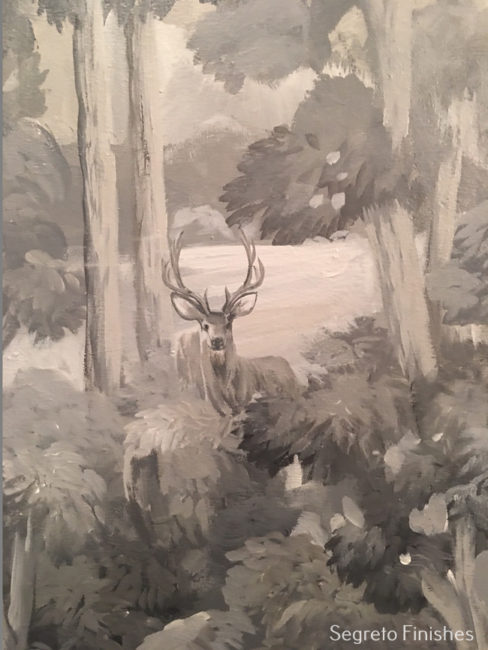 I spy a deer! One day I am going to have a tone on tone mural painted in Colorado! I just never get tired of looking at the artwork! But wait! In this house we did more!
