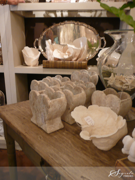 These heart-shaped, stone vases were so cool and unusual that I had to buy several for gifts. At thirty dollars each, I couldn’t go wrong! Notice also the beautiful white coral placed all around – so beautiful!