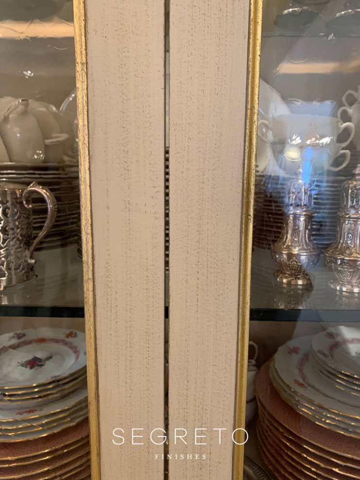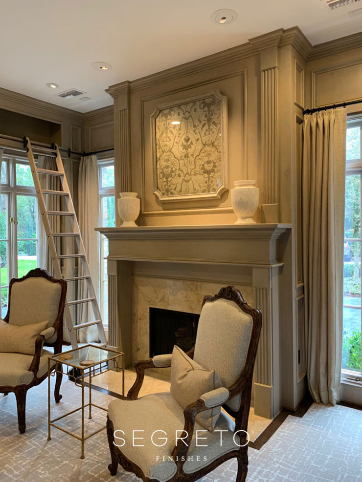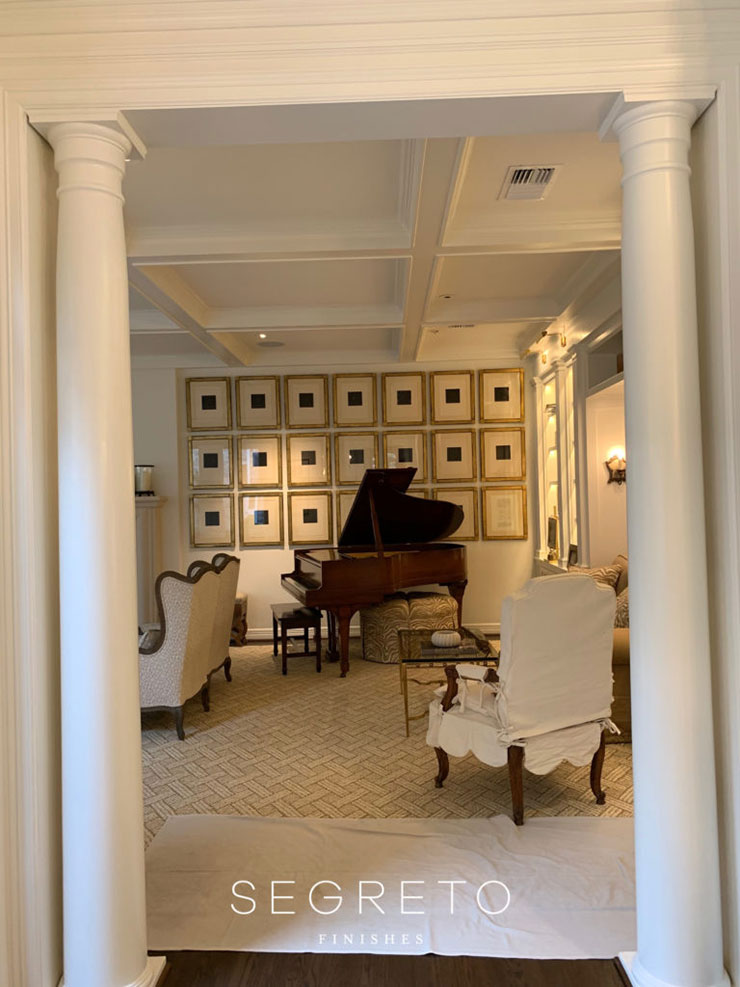 We finished it with a painted technique which pulled the tones from the adjoining study and applied gold leaf to the bead detail to dress it up for the space.
