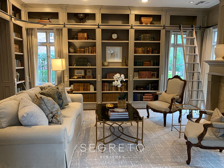 As you enter the home the study is the first room to the right.  She has an amazing antique book collection that was gifted to her by her father and she really wanted to showcase them.  Although she liked the thought of stained wood, the dark paneling felt oppressive to her.