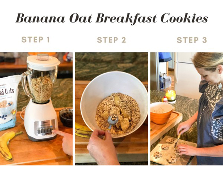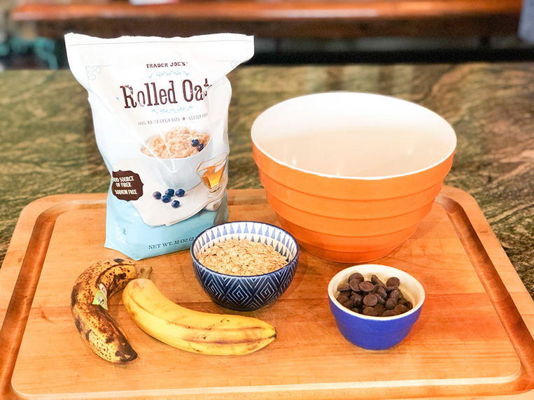 All this crafting makes us hungry! Another activity that we’ve been doing a lot more of is – cooking at home! These yummy and healthy breakfast cookies are so easy and a perfect recipe to share with your little cooks! The best thing is you really only need 2 ingredients. Cooking is the best way to teach measuring, and counting if you count while you are stirring. You can improvise and play with flavors by adding in different toppings and spices.