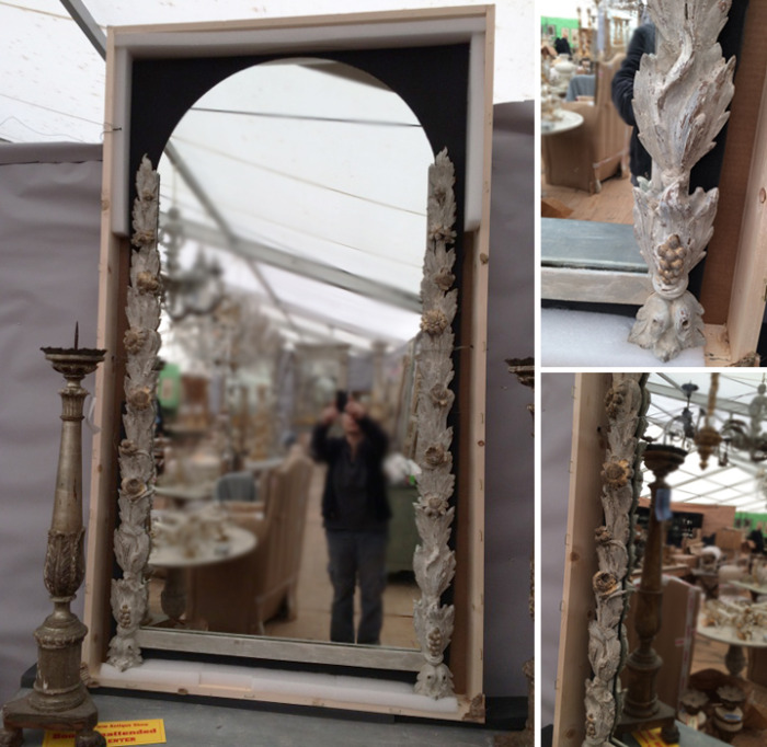 I am so excited about the mirrors I found at the Marburger Farms Antique Show from Art and Antique Hunter. Such a unique design, I was so excited that they had a pair!!! They are a bit large for my space but oh well!! I purchased a matching pair–How lucky was that!!!!!