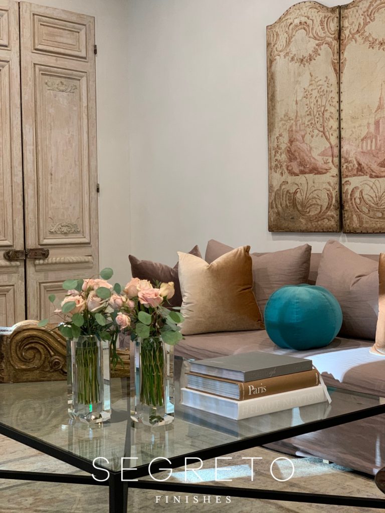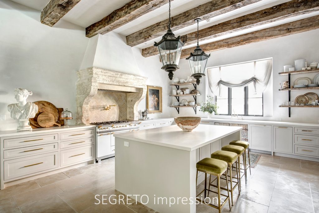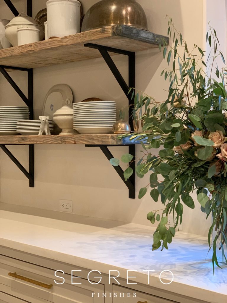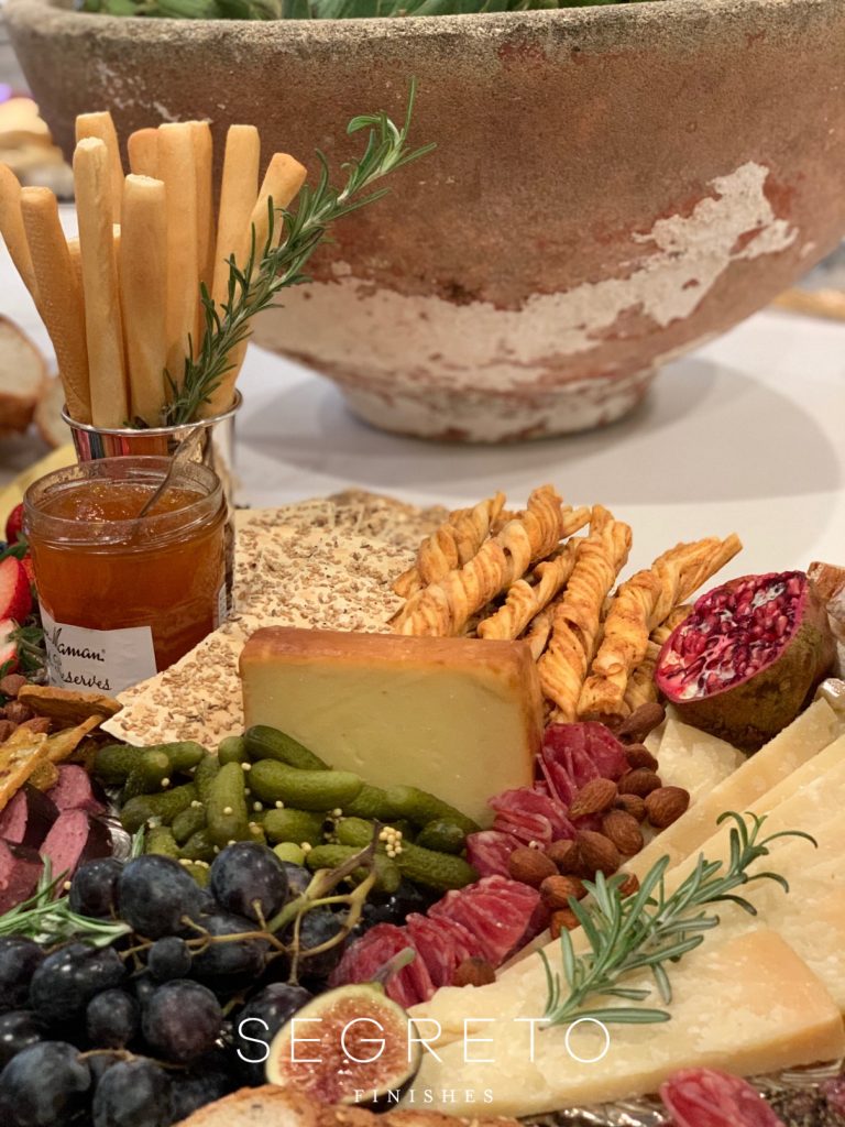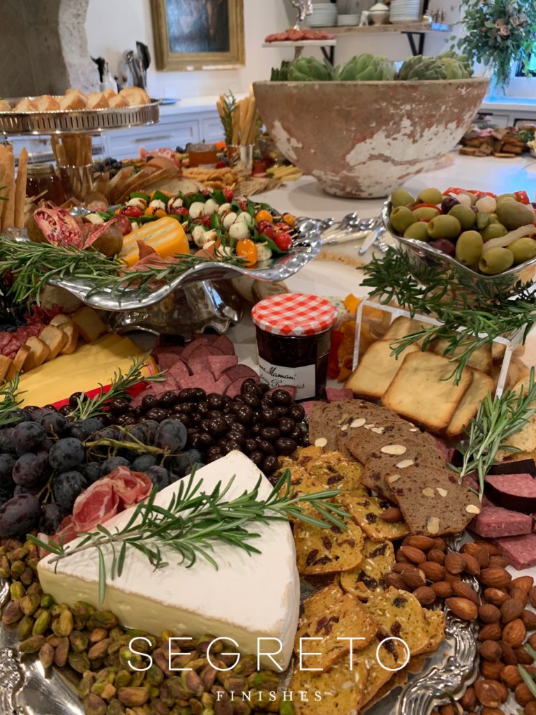 I know I have posted Ashley’s beautiful kitchen before. I love its clean look while incorporating so many reclaimed elements which her company sources. Her spread, second in Segreto Impressions, is named French modern-fitting don’t you think! Our Segretostone counters and plastered walls and ceilings meld so well with her one of a kind elements! She wanted to serve the food on her island covering it with the most amazing Charcuterie spread.