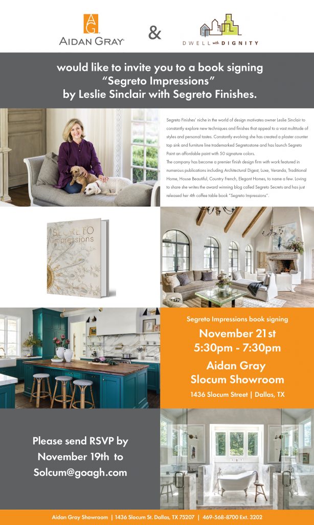 Hi Friends! With the holidays sneaking up on us and book signings weekly, I thought I would share the interiors, entertaining, food displays and gift ideas I loved at Segreto Impression’s launch. For all of my Dallas friends, I hope to see you next Thursday, November 21st at Aidan Gray with Dwell with Dignity! Hi son Matthew, Momma’s coming to visit!