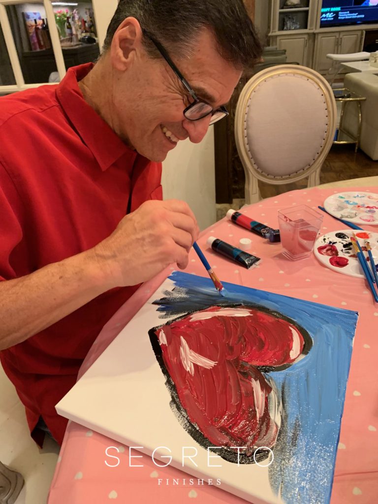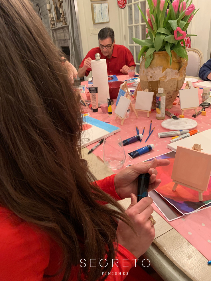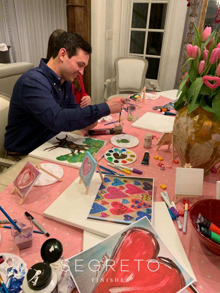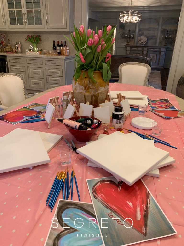 Hi Friends! As you may know, each year I put on a dinner party for my 20- somethings kiddos and their dates. Last week, I revealed my Valentine’s table decor! This week I will show you how to put on a family paint night at home!