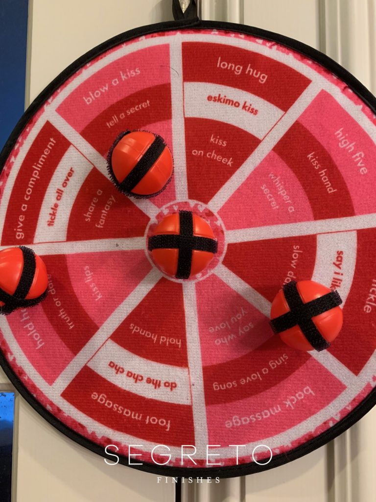 I also found these fun games at the dollar store. I purchased four, one for each couple and hung them on the door hinges. It was a fantastic way to break the ice!!