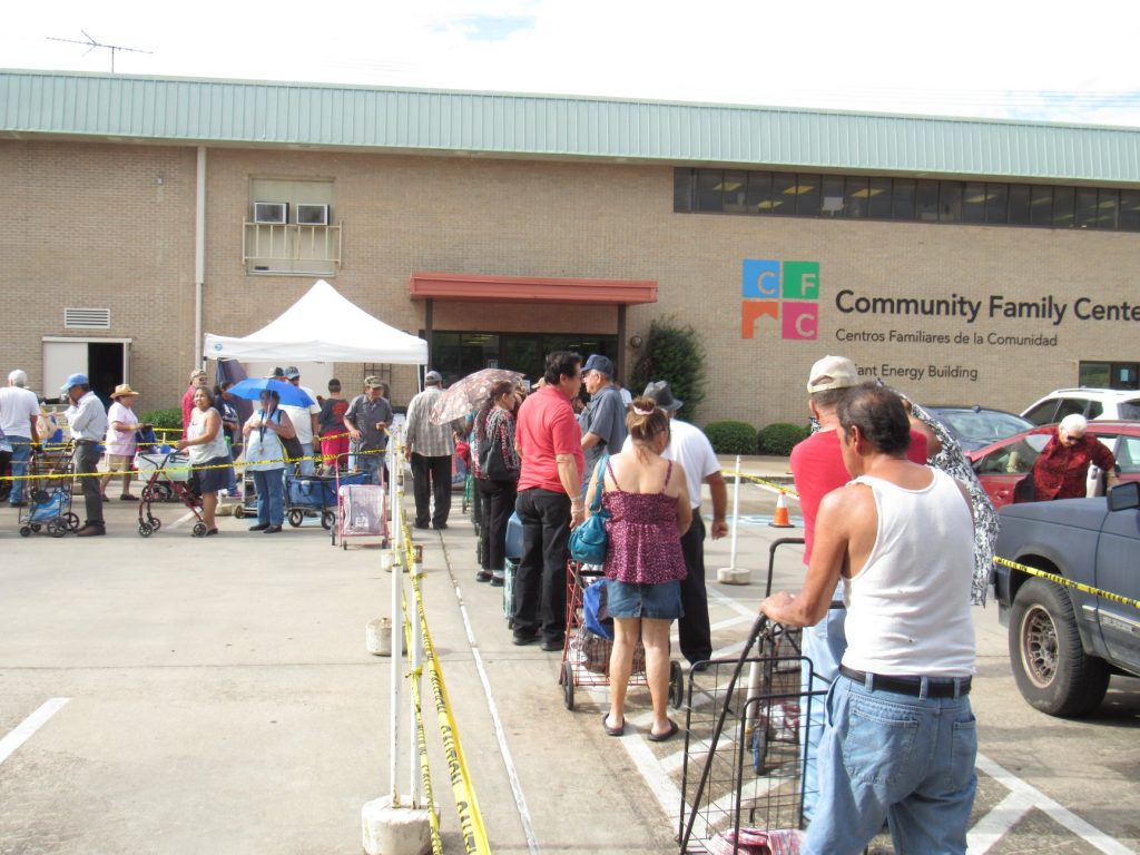 When I arrived there were people wrapped around the block with coolers, baskets, boxes, and umbrellas. It was a scorcher here last Friday and the wait can be over 2 hours to get through the line. There was no complaining just smiling volunteers and grateful people who were all happy to be there. Some were disabled, some worked two to three jobs at min. wages to support their families, others were raising their grandchildren on a set income. People were laughing, helping each other and were truly appreciative to be able to both give and receive. The Community Family Center’s mission is to equip families with the tools they need to become self-sufficient members of the community. They provide food, education, training programs and so much more.