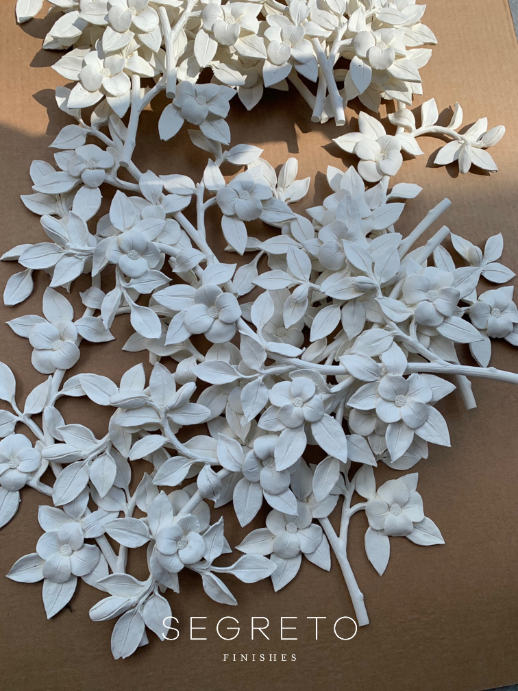 I found so many articles online which share the thought that surrounding ourselves with beauty makes us happier. Beauty comes in so many amazing forms and I want to share a few with you today. The dogwoods above are part of a project we are working on for the talented design group Marie Flanigan Interiors. First, hand formed from clay, molds were then made and hundreds of florals poured to create enough materials for an entire wall.