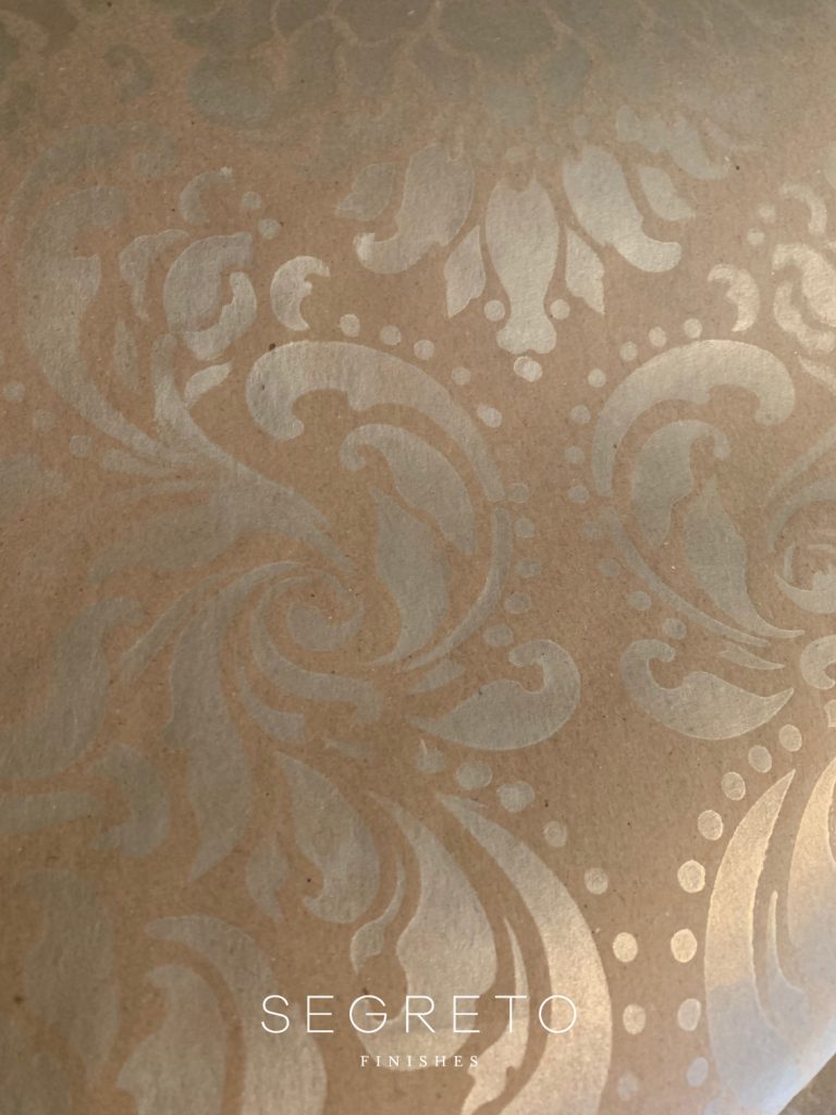 I always enjoy crafting–its relaxing to me!! I am starting early this year for holiday time and am making wrapping paper. Super easy to do, kids would also enjoy it. Imagine even simple things like their handprints! For this design, I purchased brown floor paper ( home depot, or any paint store) and stenciled over it with a foam roller in a champaign metallic paint. Easy breezy and beautiful? Feel free to email me directly for more detailed instructions. Leslie@segretofinishes.com.