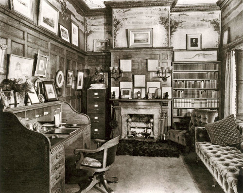 Andrew Carnegie’s decadent study has a beautiful painted mural above the paneling of one of his favorite inspirational quotes “The Kingdom of Heaven is within you.”