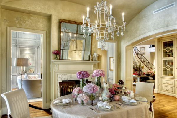 Regina’s developed an eye for different color palettes and an appreciation for various decorative styles. “Ultimately, I never want to overpower the home with decorations, but complement the everyday decor.” This formal living room has such an elegant feel! The paneling is softened by this glazed finish, providing a beautiful backdrop to the light, upholstered pieces with fabulous lines and the subtle floral touches! It’s hard to tell where the interior design ends and the Easter decor comes in!!!