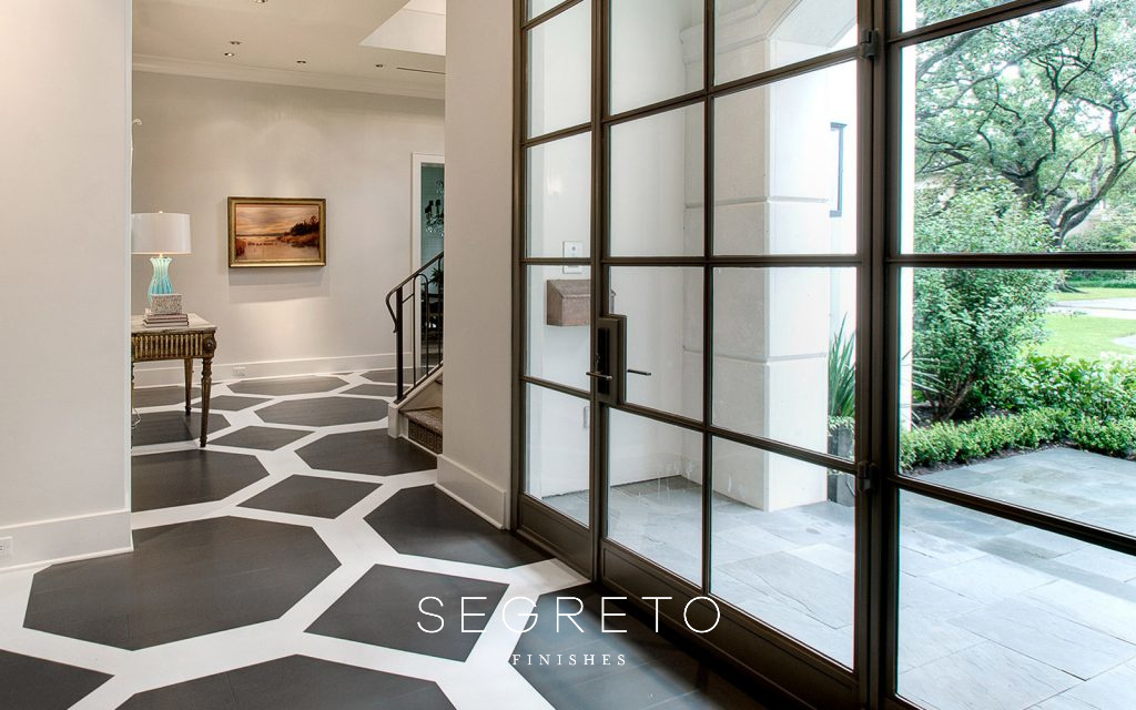 During the 1700s, compass rose patterns, floral and wildlife designs, and faux inlaid wood were all commonly featured as floor motifs. In Sweden and Colonial America, painting or whitewashing pine floors was the norm. These styles, adapted to include more contemporary graphics and bold colors, are now finding their way into new design trends. Painted floors can take the place of inlaid stone or tile to define an area, producing interest and distinction in any room. Not only do painted floors hold up well, allowing for easy cleanup of spills and dust with the right products, but they also lend an unexpected and dramatic effect. In the past, I’d always thought of rooms as having five surfaces to consider for finishes: the ceiling and four walls. But after seeing how treating floors as individual elements contribute to the home’s overall allure, I now think of the floor as the sixth wall.