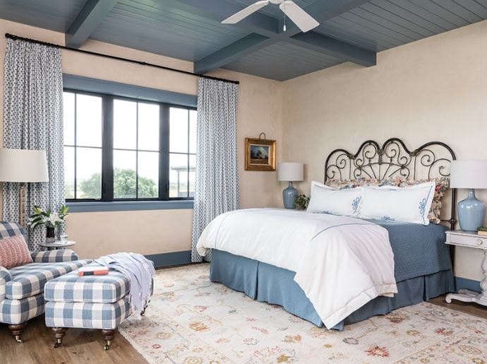 “Lindsey was able to bring an authentic touch to the French-country look with a treasure trove of antique finds, such as a French light fixture in the entryway that gives a nod to the farm with its wheat-like appearance and a 19th-century French chaise longue in the primary bedroom. “With it being a newer farmhouse, we still wanted it to have some charm and age, so antiques were an important component in the design,” she says.”The Cottage Journal