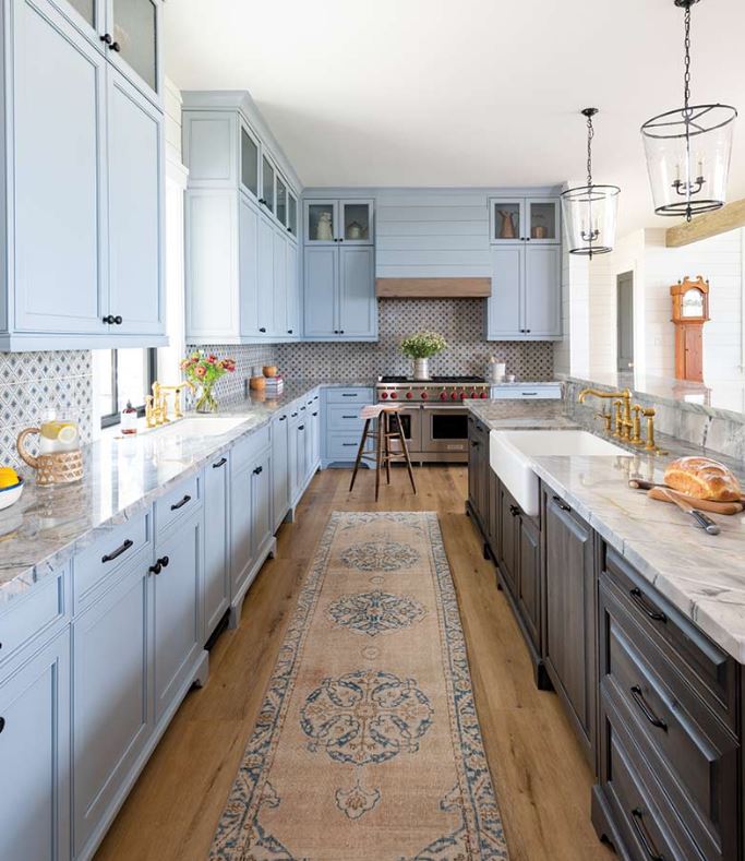 Throughout the abode, there is a practiced blend of classic pieces along with contemporary inclusions that ensure the comfort and convenience desired in a vacation home. Durability was also a key factor in decisions that ranged from performance fabrics to quartzite countertops in the kitchen. “Everything can withstand dirt and hold up to lots of kiddos and big groups,” Lindsey says. “You don’t have to stress—it’s easy country living. And that is ultimately what is at the heart of this design—a tranquil respite where family can gather and forget their day-to-day troubles. “Even though it’s a large house, it feels cozy,” Lindsey says. “You want to kick your feet up and stay for a long time. That’s what you want in a country house—in a getaway. You want to walk in and feel immediately at home.”The Cottage Journal