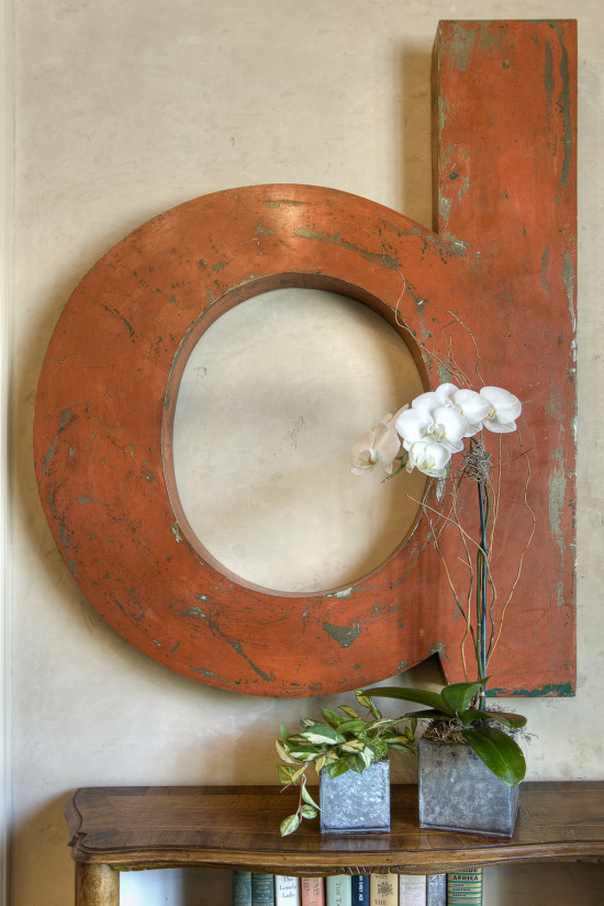 I just adore this “d”–an old iron letter from Found. It was a gift to Ellie’s husband, David, for his birthday. It’s interesting and unexpected–just like the house!