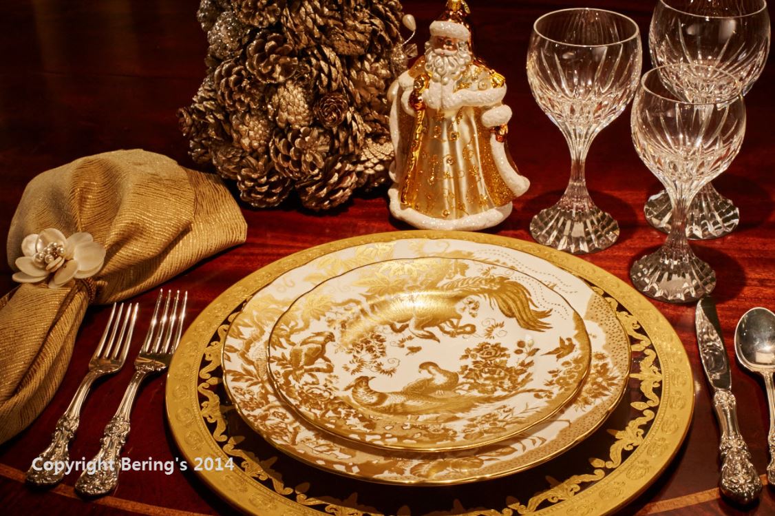 Look how beautiful a formal Christmas affair would be with this setting using a Radko Ornament, Royal Crown Derby Plates and Arte Italica chargers!!!