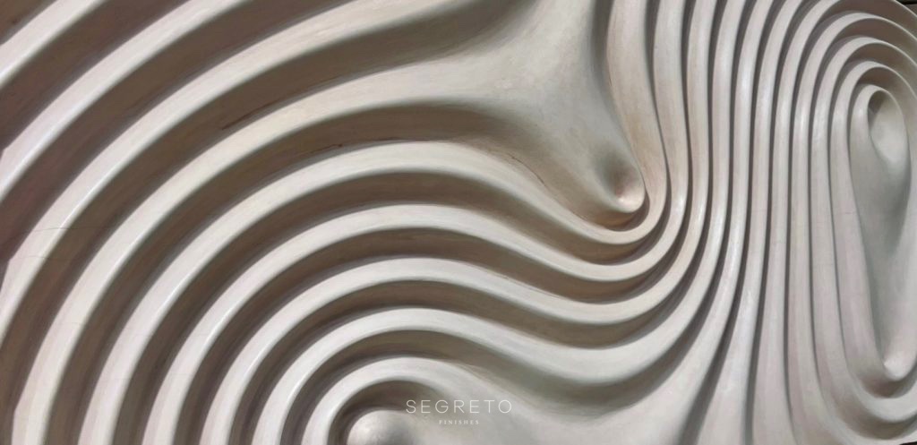 This is from our “Groovy Art Series” which we created from plaster! This particular piece coated in a soft neutral blush, it would beautifully fit in in any color palette or any pattern! Yes! Our art gallery is back in our new showroom!! I love having the space to showcase our staff’s creative endeavors!!