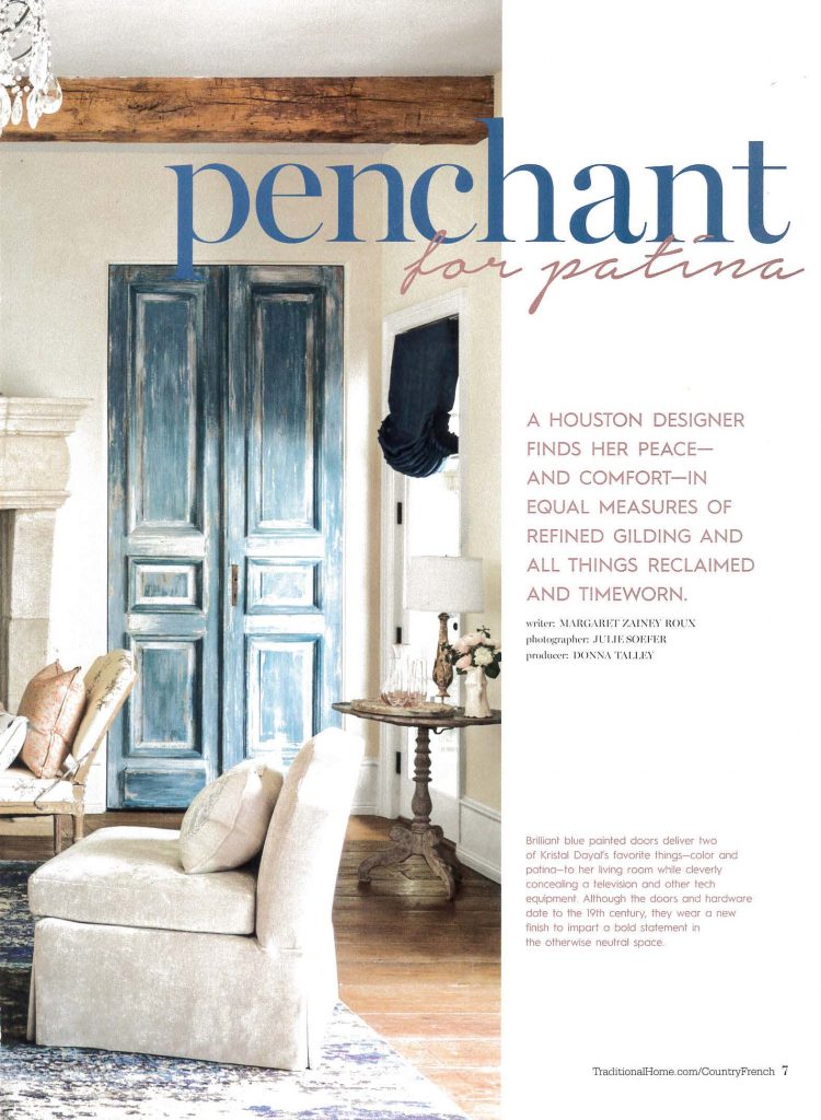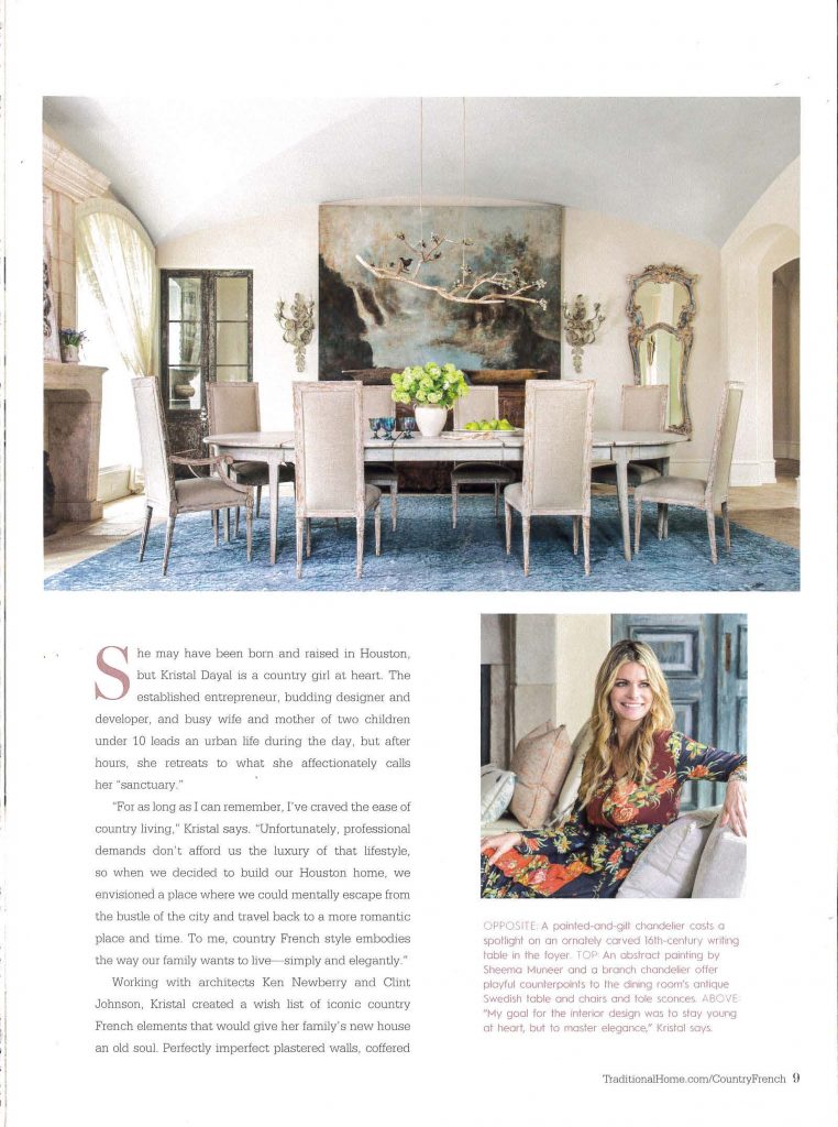 This week I wanted to share with you some beautiful homes that were showcased in two of my favorite magazines! First, this issue of Country French magazine features Houston entrepreneur, budding designer, and developer Kristal Dayal’s gorgeous home. Take a peek inside her family’s “sanctuary”!