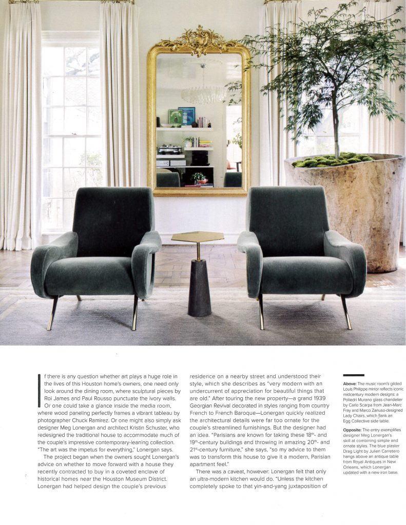 Yes, you have seen this home in the sneak peek of Segreto Impressions! An unbelievable Parisian apartment feel that it also made the cover of LUXE! Contemporary art and furnishings fill this Houston home which was inspired by apartments in the city of light! Designer Meg Lonergan and architect Kristin Schuster redesigned this traditional house to accommodate much of the couple’s impressive contemporary-leaning collection of art.