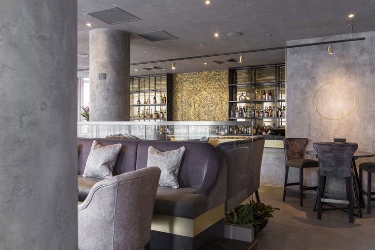 Is it effective? Look at this beautiful installation of Martin’s at the Opheem Restaurant with the product creating a textured brass accent wall at the bar and their logo to the right.