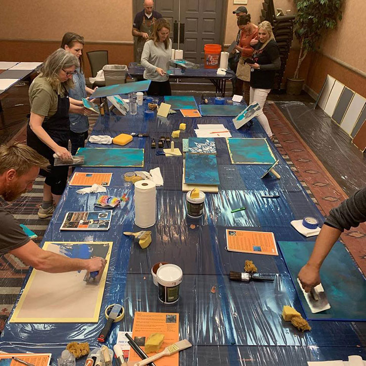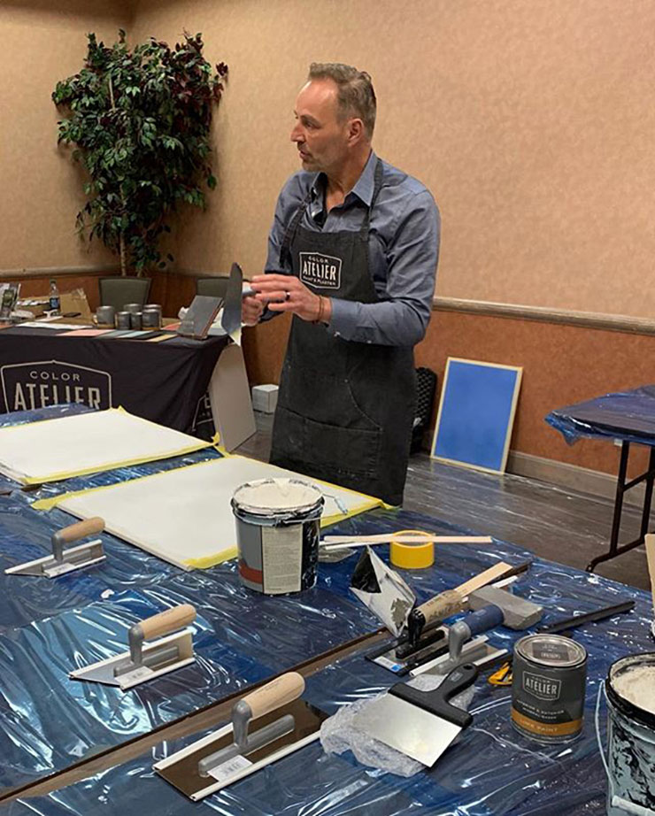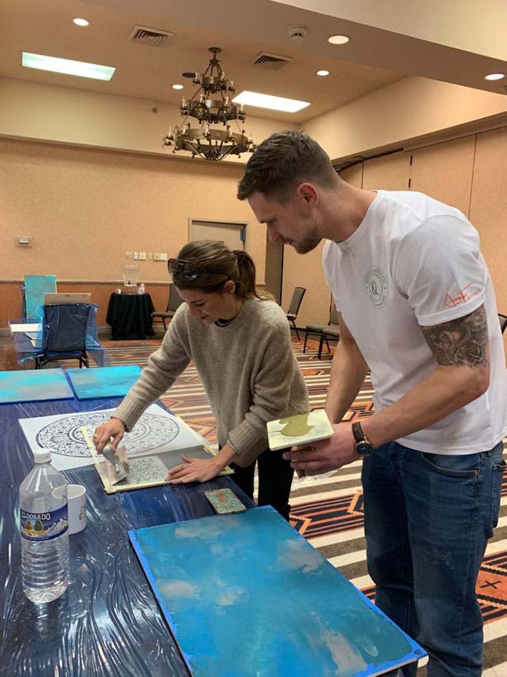 We were fortunate enough to be able to sit in on these two’s AMAZING CLASS!! Both artists are from England and I would have to say they were absolutely masters in their craft! Andy, owner of Stucco & Stucco in West Yorkshire is also an ambassador for Novacolor, an Italian plaster manufacturer. Martin owns Marmo Designs based in the Midlands. They both have worked on prestigious projects across the globe, are so gracious and are both really excellent teachers. Pull up their websites and follow them on Instagram!!