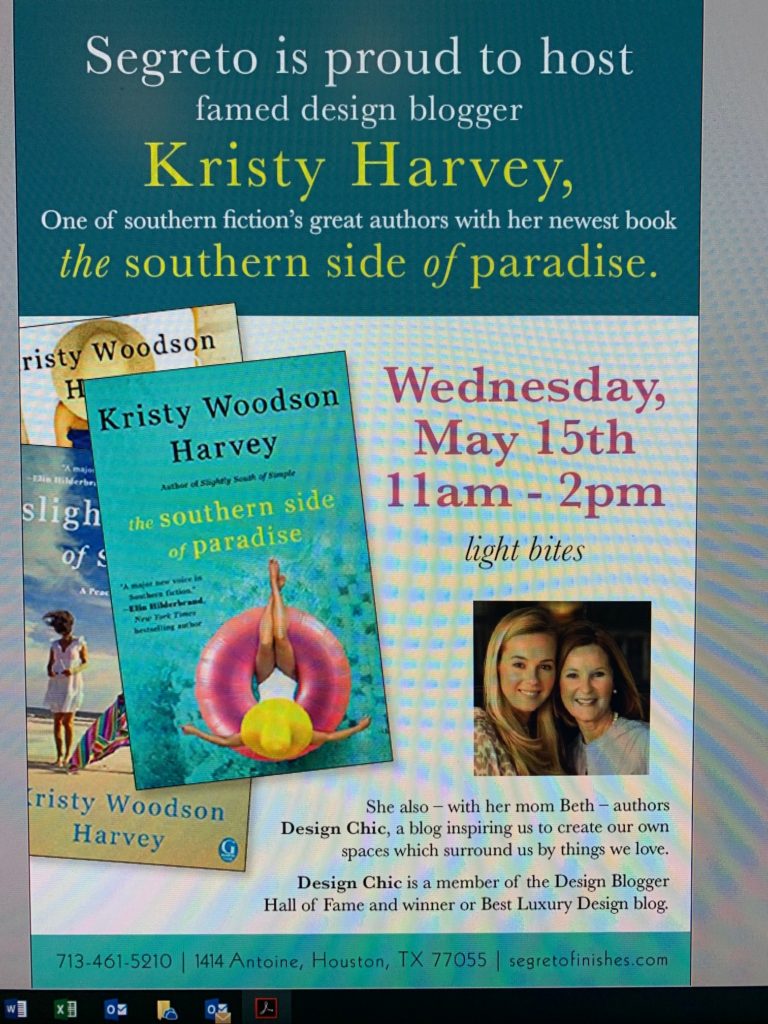 And……  Kristy Harvey and her cute Mom Beth, who co-author Design Chic, awarded Best Luxury Design Blog, will be coming to Houston for a visit. You are invited!!
