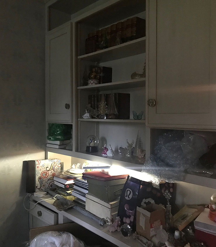 After the last renovation @ 5 years ago, it just became a place for me to throw everything! Accessories I wasn’t using, luggage and storage for gifts.   EMBARRASSING! But who knew? —the door was always shut. I didn’t even fix the walls from where the new windows were installed.