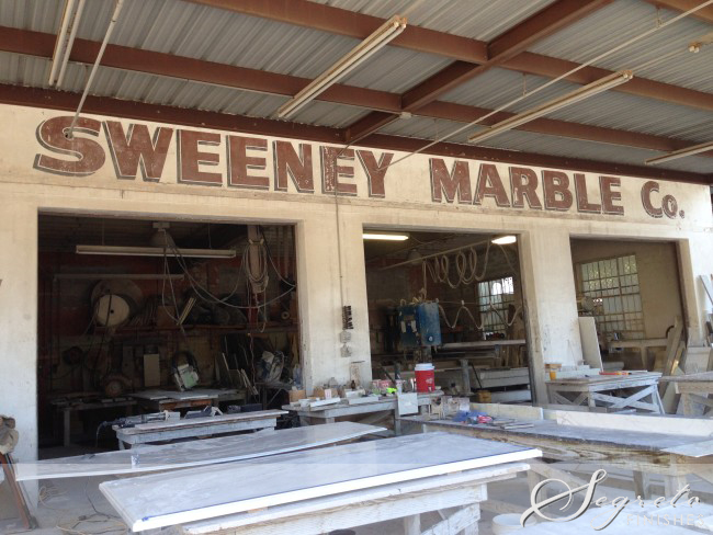 I headed to Sweeny Marble Co. here in Houston to see if they had a remnant I could use — saving me of buying a full slab of marble for such a little space!! This is such an amazing place; most of their work is still done by hand. It is a family-owned business that was handed down from father to son, and now his son is working there!!