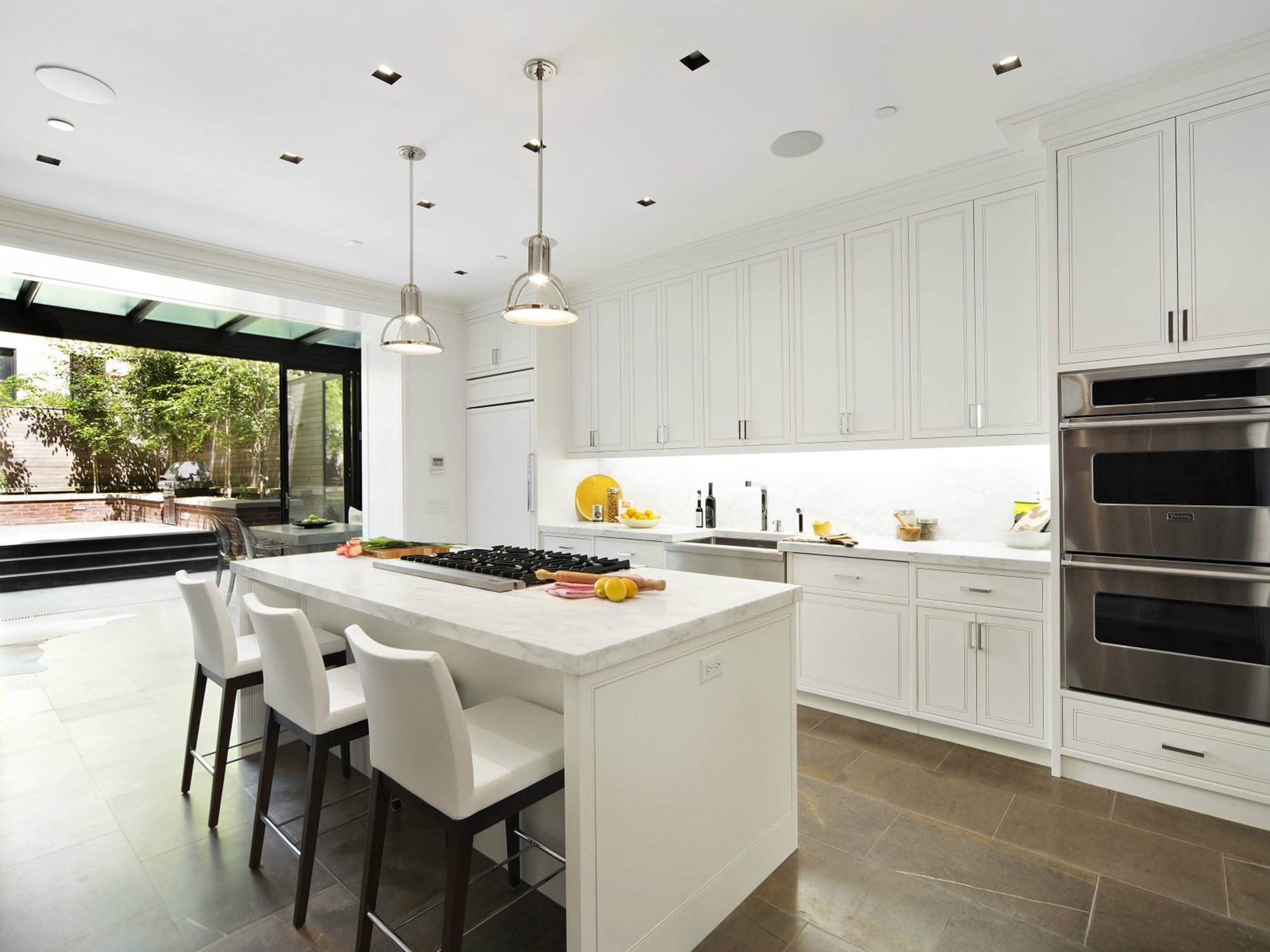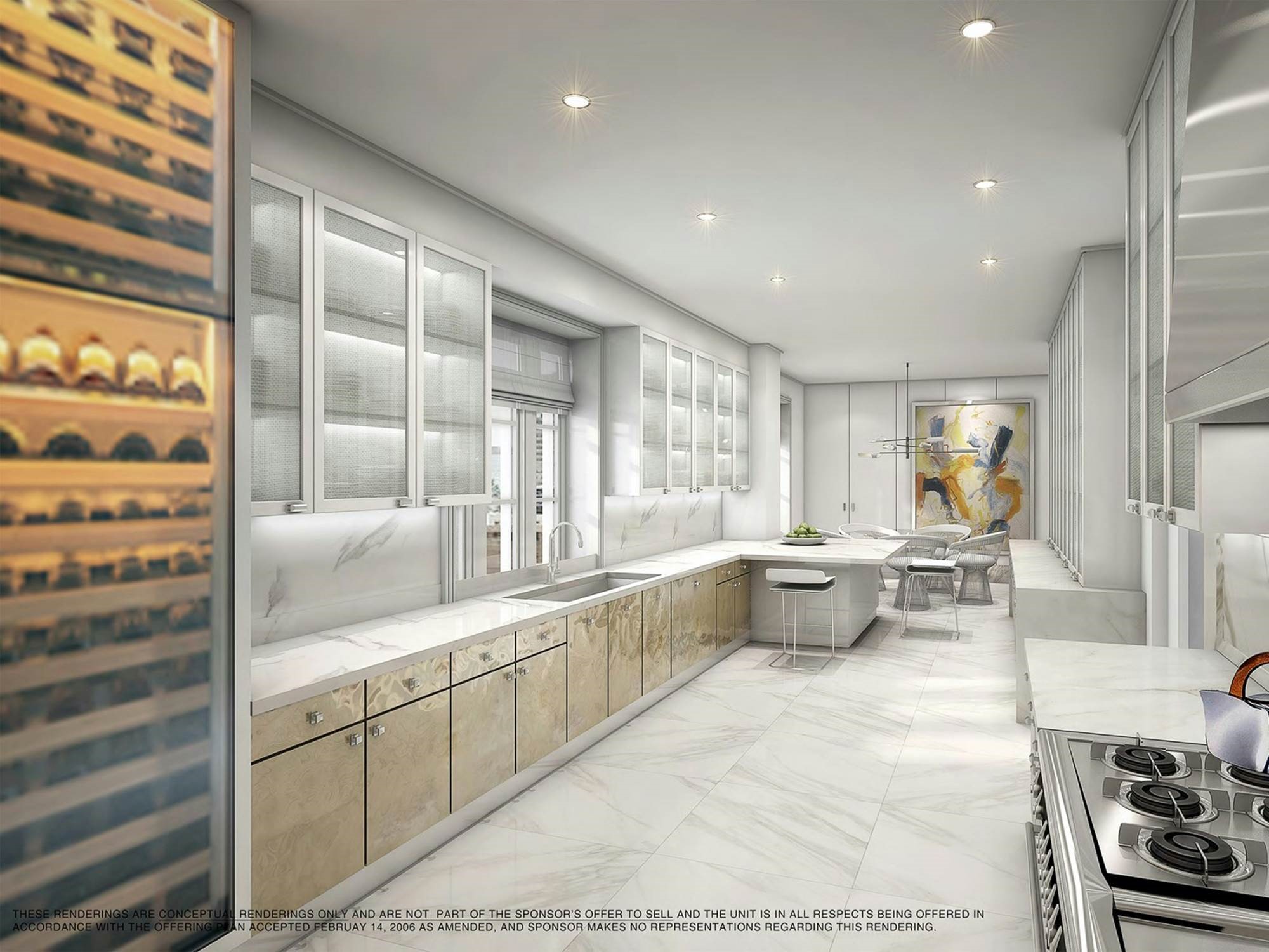 Listed for $13,900,000, it includes a new state of the art kitchen with marble counters and back splash and opaque glass upper cabinets.