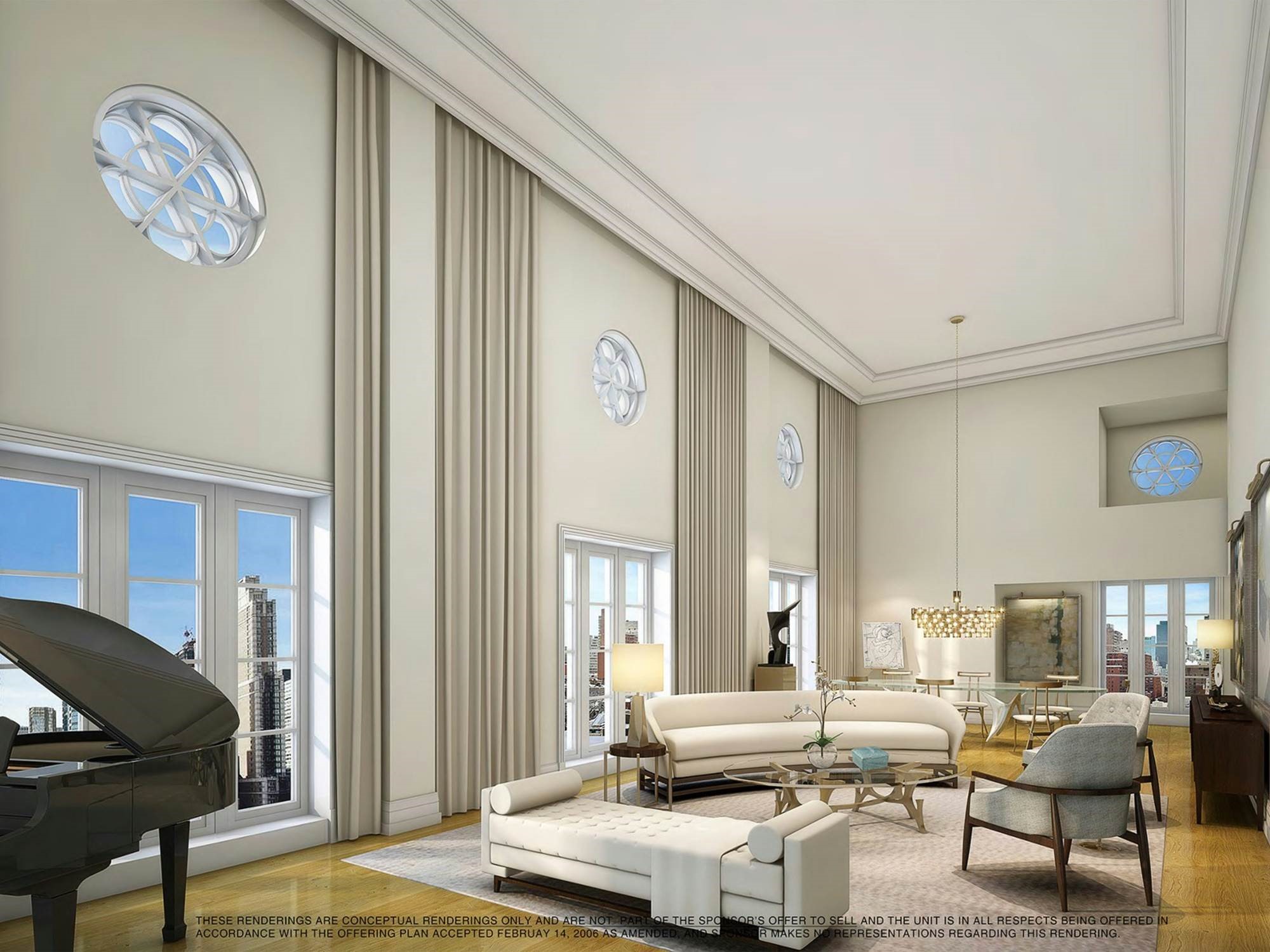 If you would like a bit smaller of a place to call home, this penthouse apartment, measuring 5345 Square ft., includes two story ceilings and sprawling views!
