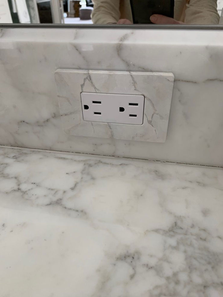 Disguising electrical plates to read like the surface they are around seems like such a small detail, but truly is that special added touch which makes all the difference in the world!