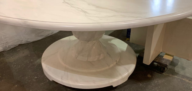 Emulating stone has always been in our toolkit as we marbleized these columns about 20 years ago!! Now that request is coming back and we are seeing the real trompe l’oeil effects in all types of design.