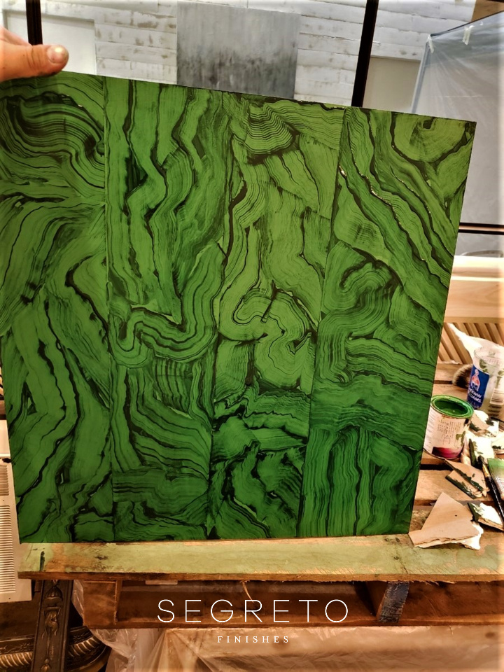 This table was painted in the same fashion for designer Linda Eyles that was fabricated by the Joseph Company. They have been so super patient with us as we have been testing new ways to apply sealers which have that authentic sheen of the real material.