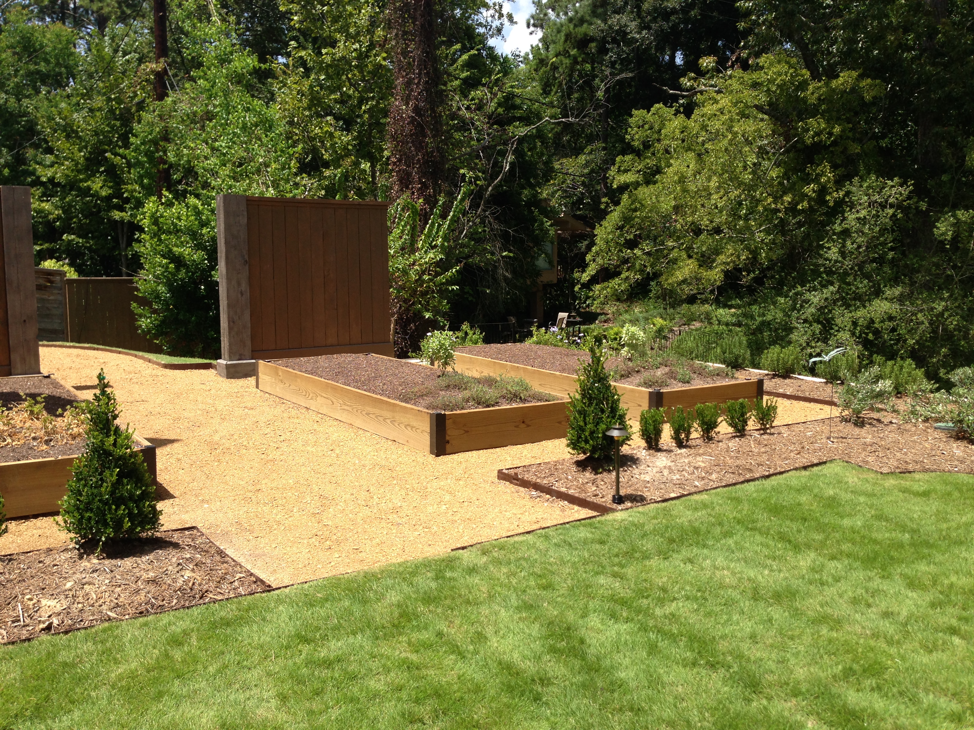 Here is another client’s home who is just beginning her raised garden. By raising the beds it is easier to get the proper irrigation.