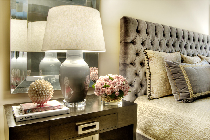 The master turned out so dreamy with the mirrors from Shabby Slips flanking the bed. The bedding is a combo of custom and Plush Home. The night stands were made by Solano furniture and were inspired from a coffee table. Julie originally had slated silver lamps for the bedside tables, but when she saw the blue ones at AREA she new those were just right! I hope you enjoyed seeing this Hollywood home!! I loved the evolution of it all!!