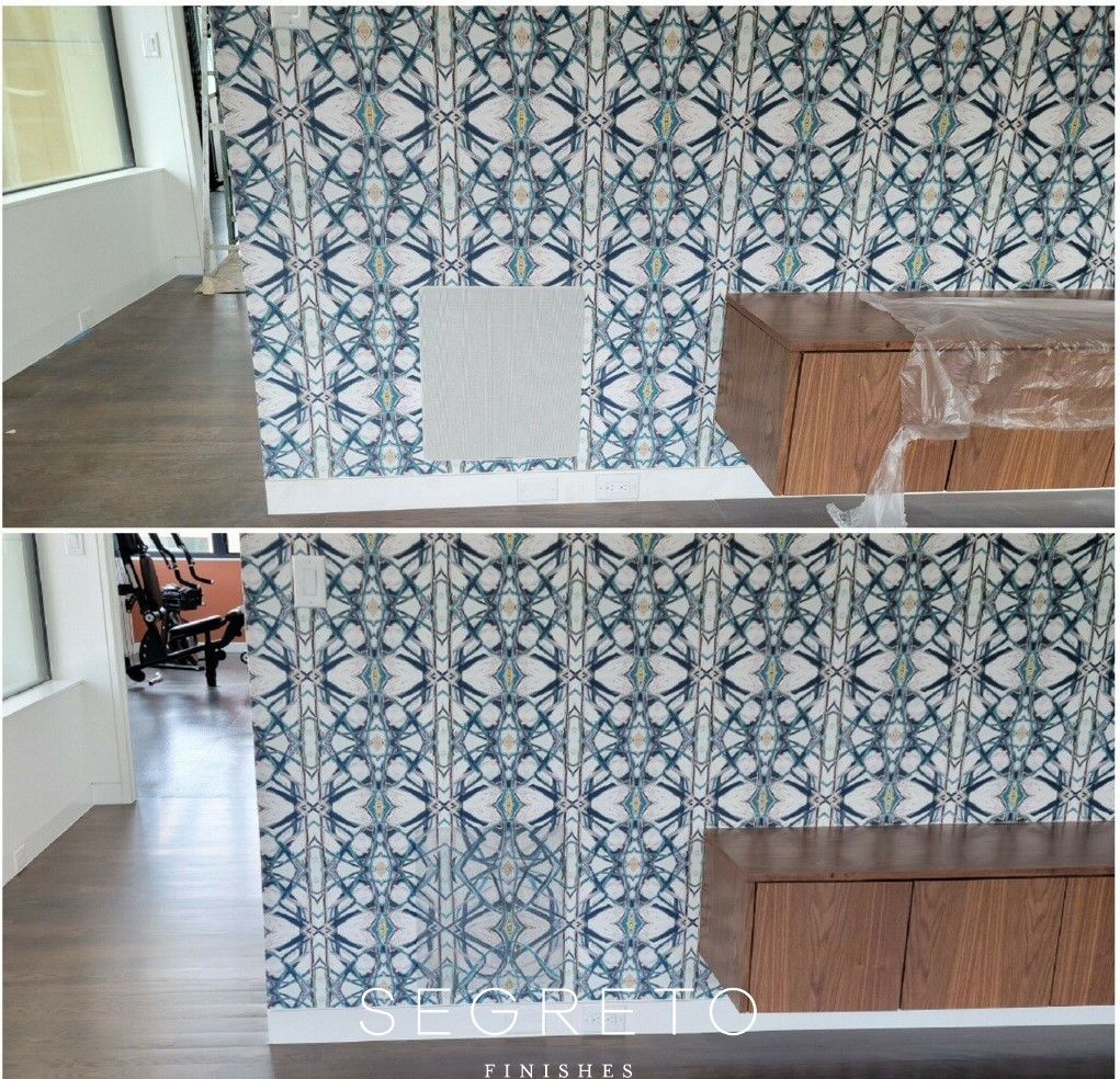 This was such a fun and challenging project to be a part of. Glasser Cooper Interiors called us to implement a vision their art collector clients had for their media bath. They fell in love with Sol LeWitt’s “Wall Drawing #33” of 1970, which was executed by student drafters in the Modern and Contemporary Gallery at the Utah Museum of Fine Arts. This rendition had challenges because the room was curved, however the design perfectly lined up. Go Team!
