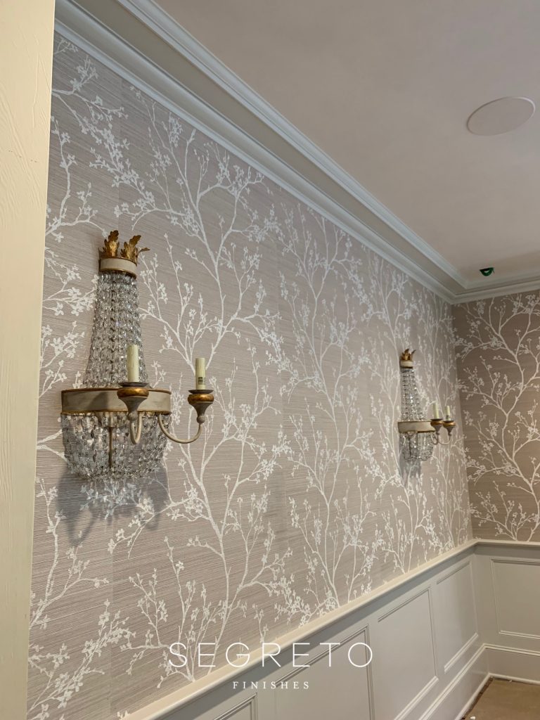 So when I was called in to work with her on a home designed by architect legend A. Hays Town, of course, I said yes! Mersina chose a pale blush plaster to compliment her organic printed grasscloth. I can’t wait to show you this home in its entirety!