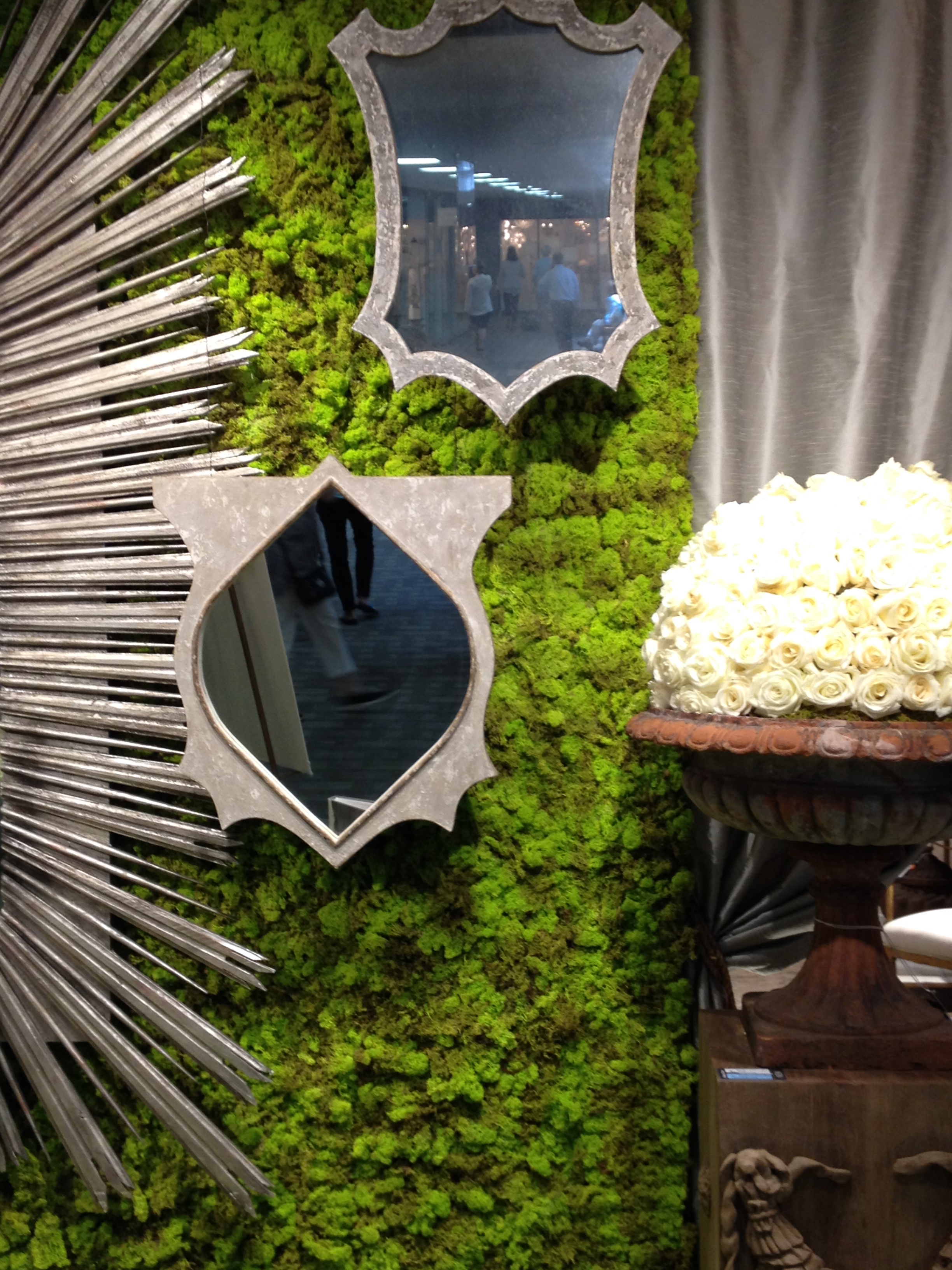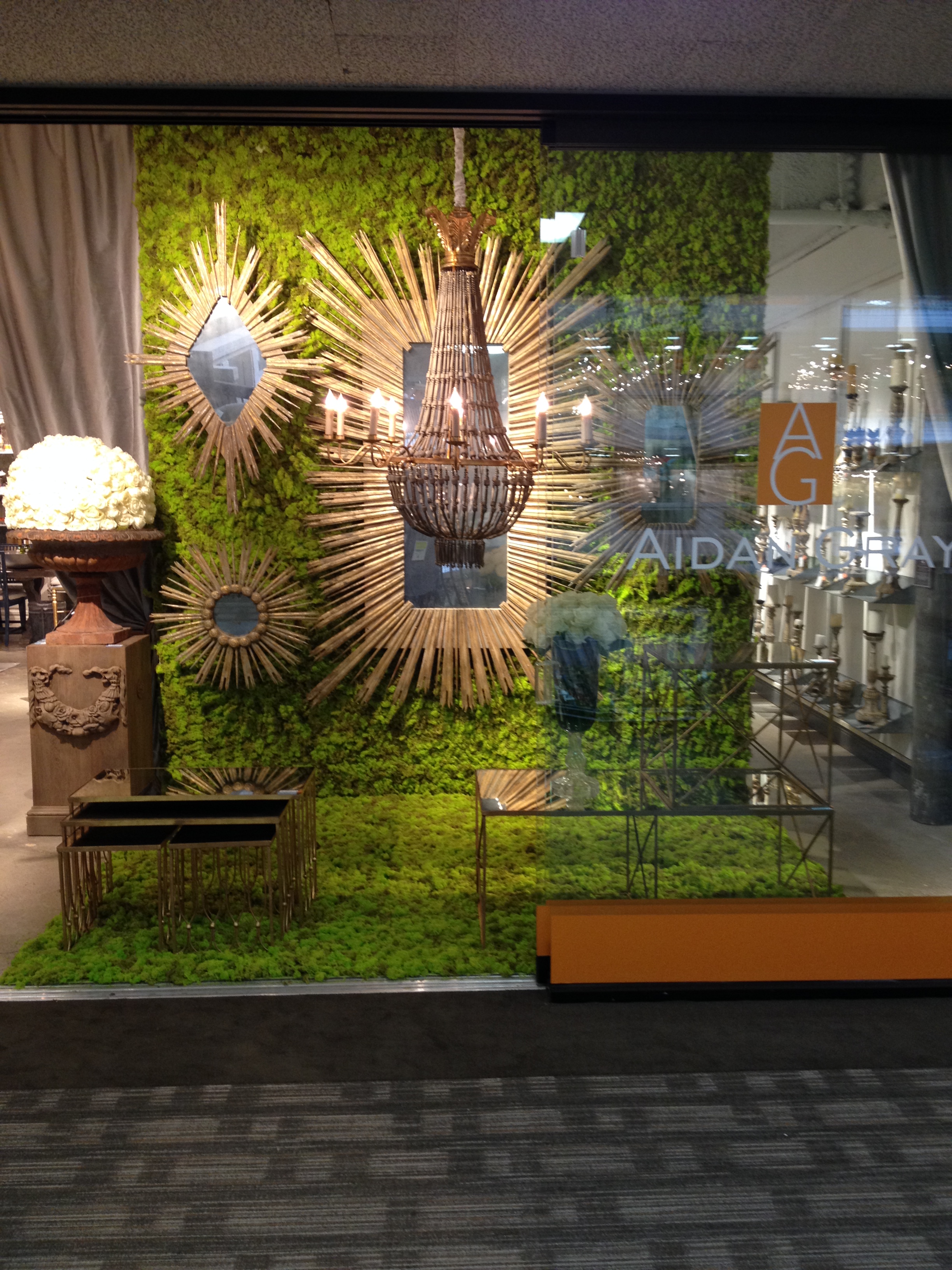 The fresh roses mixed with moss were beautiful!!  While I was there, Aidan Gray’s showroom received the Market’s award for best window display!! The front mirrors were such an interesting shape that I purchased them for the Segreto Boutique!
