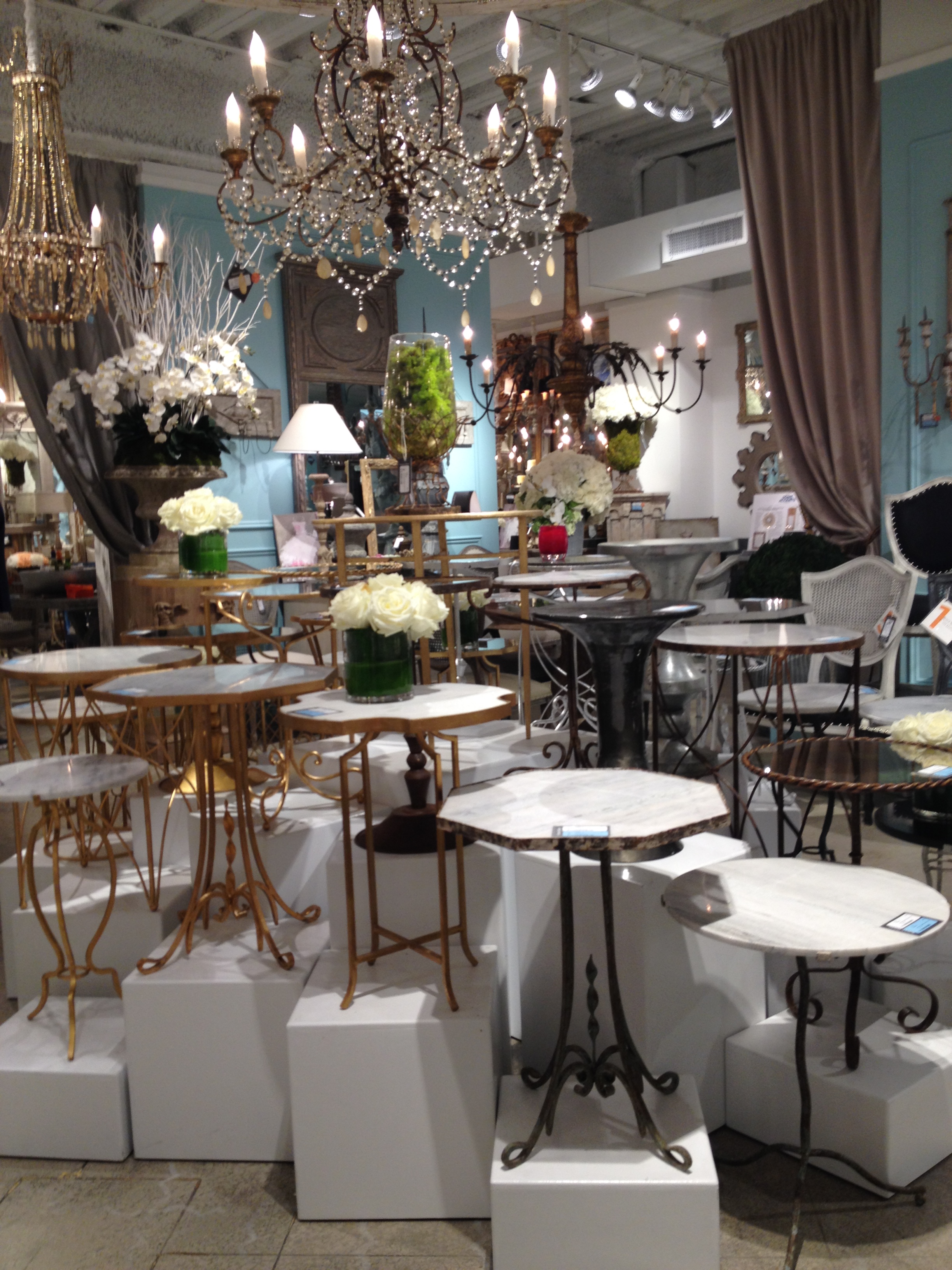 I loved how the showroom’s new pop of Robin’s egg blue really set off Aidan Gray’s furnishings!! Arriving early for the book signing allowed me to shop for the Segreto Boutique: I selected a few of these wonderful side tables!