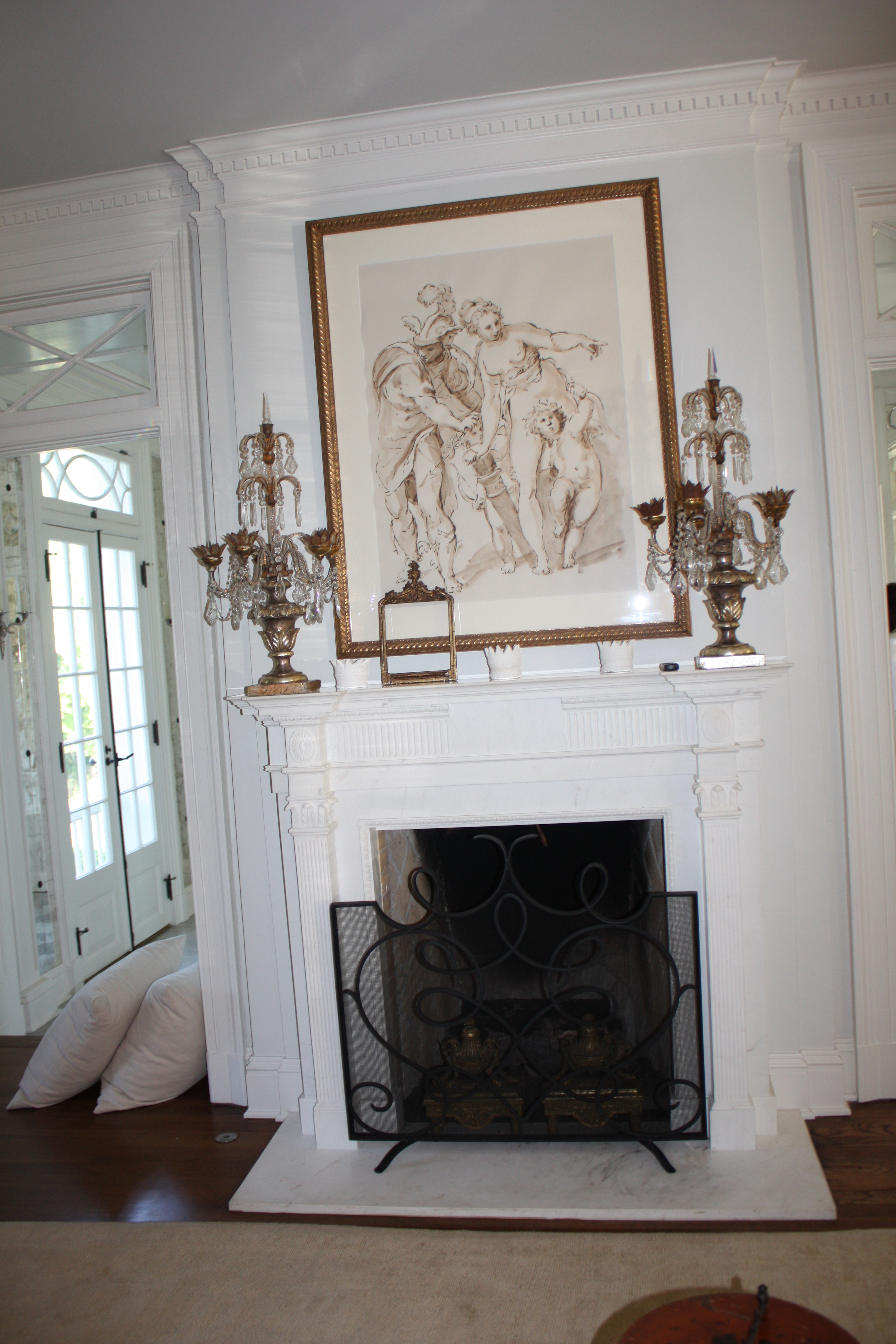 This is a little keeping area.  Love the old marble floors, antique mirrors and the beautiful period grate in the floor!!