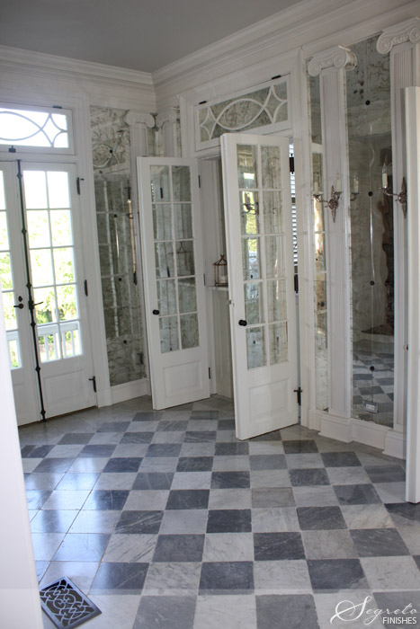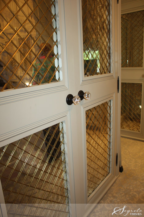 I adored her master closet.  Revamped with the mirrors and brass panel insets, it was so charming!!