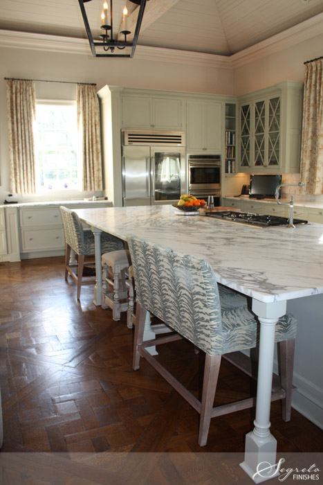 What a most exquisite home from the gorgeous interiors to the lush landscaping and porches….I love the many architectural details from the magnificent beams in the kitchen to the millwork and doors in the keeping area…What a treat is must have been to tour this home…every inch of this home has extraordinary detail…Thanks for letting us tour this home too….