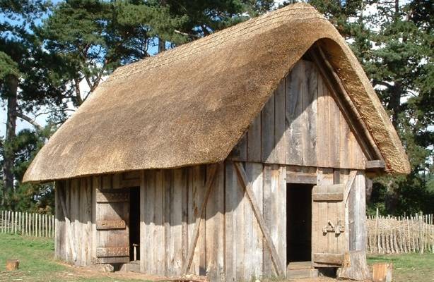 In the middle ages, holes were dug in the center of the room for the wood and in the thatched roof ceilings for the smoke to escape. Imagine the constant worry of the ambers igniting those roofs!