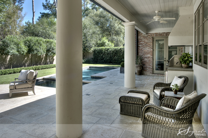The backyard is such a nice place to relax and enjoy the pool. These chairs were a great find from Roundtop. Formerly bright red, we painted them a nice, rich gray brown to look like her patio furniture. The house just turned out amazing!! Claire you did an amazing job!!! Thanks to Wade Blissard for such wonderful photography!! Hope you have a wonderful week!!