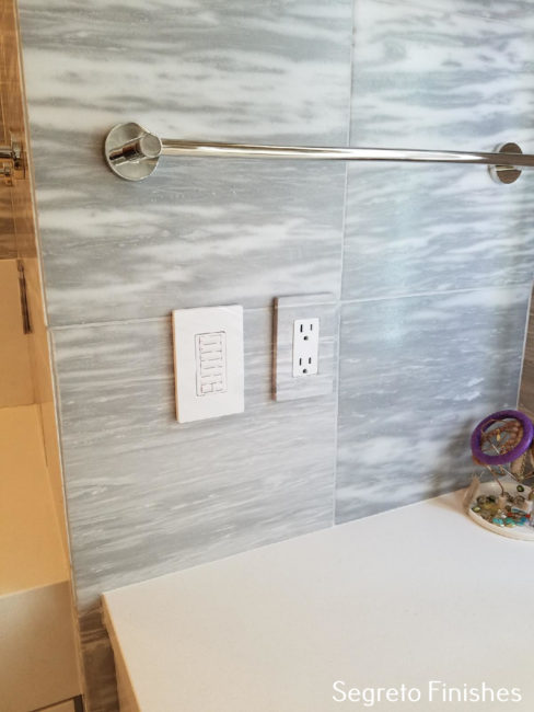 I never get tired of seeing how painting plugs to blend with the counter surface make such a big difference.  This counter? Marble? Granite? Quartz? No it is petrified wood!! Beautiful!