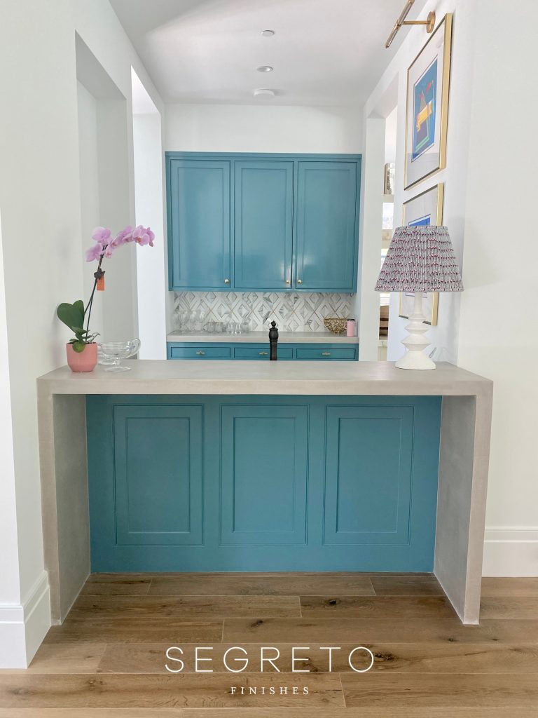 We were so excited to create their vision for the tabletop!! Set on the homeowner’s existing table base, this SegretoStone tabletop gave this piece an easy refresh for their outdoor entertaining area. SegretoStone is an amazing product, whether going over what you have or starting from new, this all natural lime based product, is more durable than concrete or marble and can seamlessly be repaired in place.