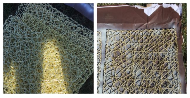 Ordering these placemats from Z Gallerie on sale to layer over my off white square mats I felt they needed to be tweaked when I saw them in person. Picking up some gray spray paint from Home Depot, It was an easy fix to mist over them which toned down the gold.