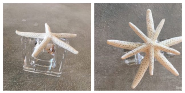 Wanting starfish, I ordered some from Quality Shells . They average .56 each for 2-3 inch size and 3-4 inch sizes. My Mom and I had a craft day and glued the smaller shells on top of the larger ones with a hot glue gun.