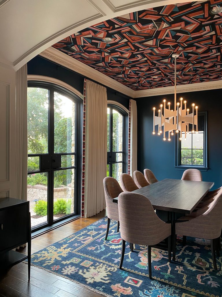 Let’s play our favorite game of “I Spy”! Notice the far window was painted the same as the walls, drawing focus to the beautiful iron doors and drapery on the patio side. Well done!