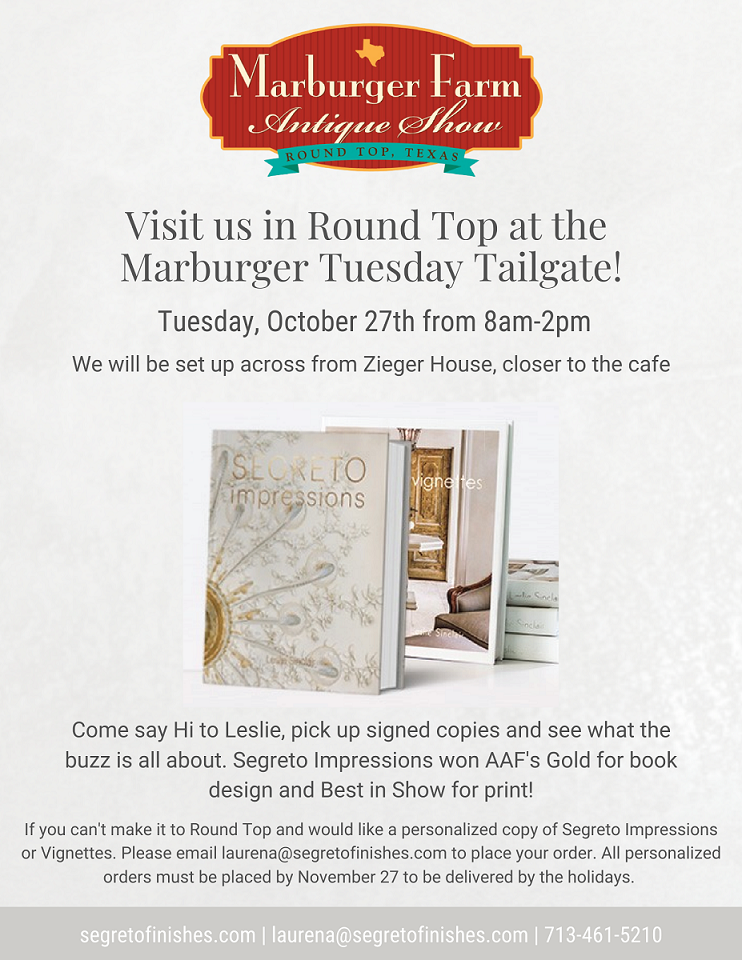 Join us tomorrow, October 27th, at the Marburger Farm Antique Show Tuesday Tailgate! Follow along on Instagram (@segretofinishes) to see where our booth is located so you can come by to say Hi. I look forward to seeing you there! Let’s do our part to keep this country connected. Tell someone this week they are special to you! You, my friends, are special to me! Till next time! XO Leslie